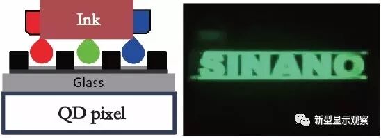 图3 喷墨打印示意及量子点发光图形